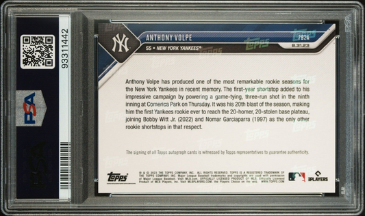 ANTHONY VOLPE- PSA 10 AUTO - 2023 TOPPS NOW 792A AUTOGRAPH YANKEES 20 HR 20 SB