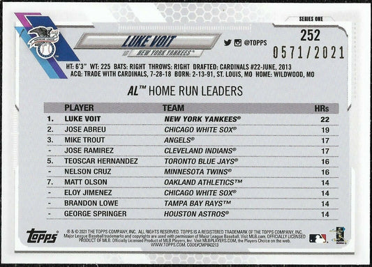 2021 Topps - LUKE VOIT #252 -Gold Parallel 571/2021 - League HR Leader