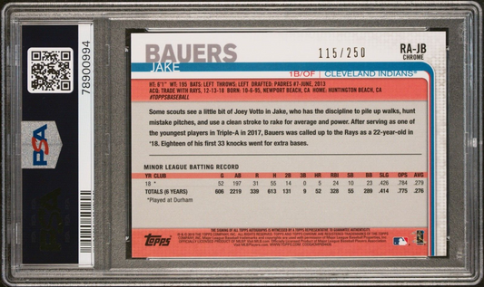 Jake Bauers -PSA 10 AUTO - 2019 Topps Chrome Rookie #RA-JB Purple Refractor