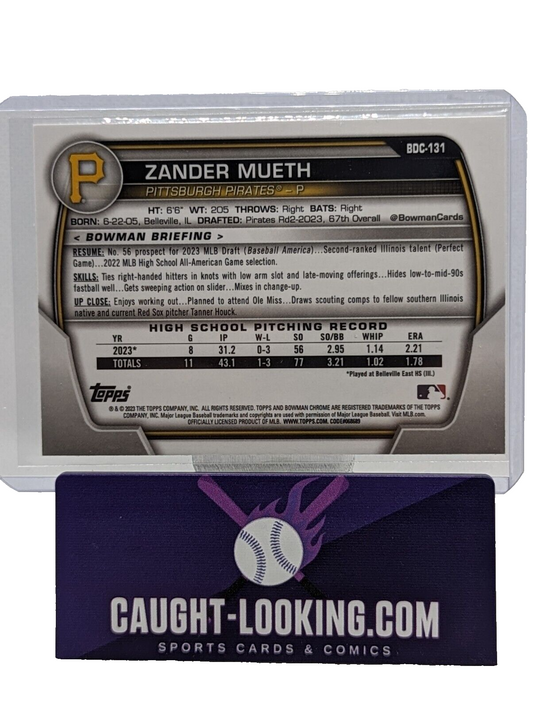 Zander Mueth 2023 Bowman Draft Chrome #BDC-131 1st Bowman Pirates Prospect
